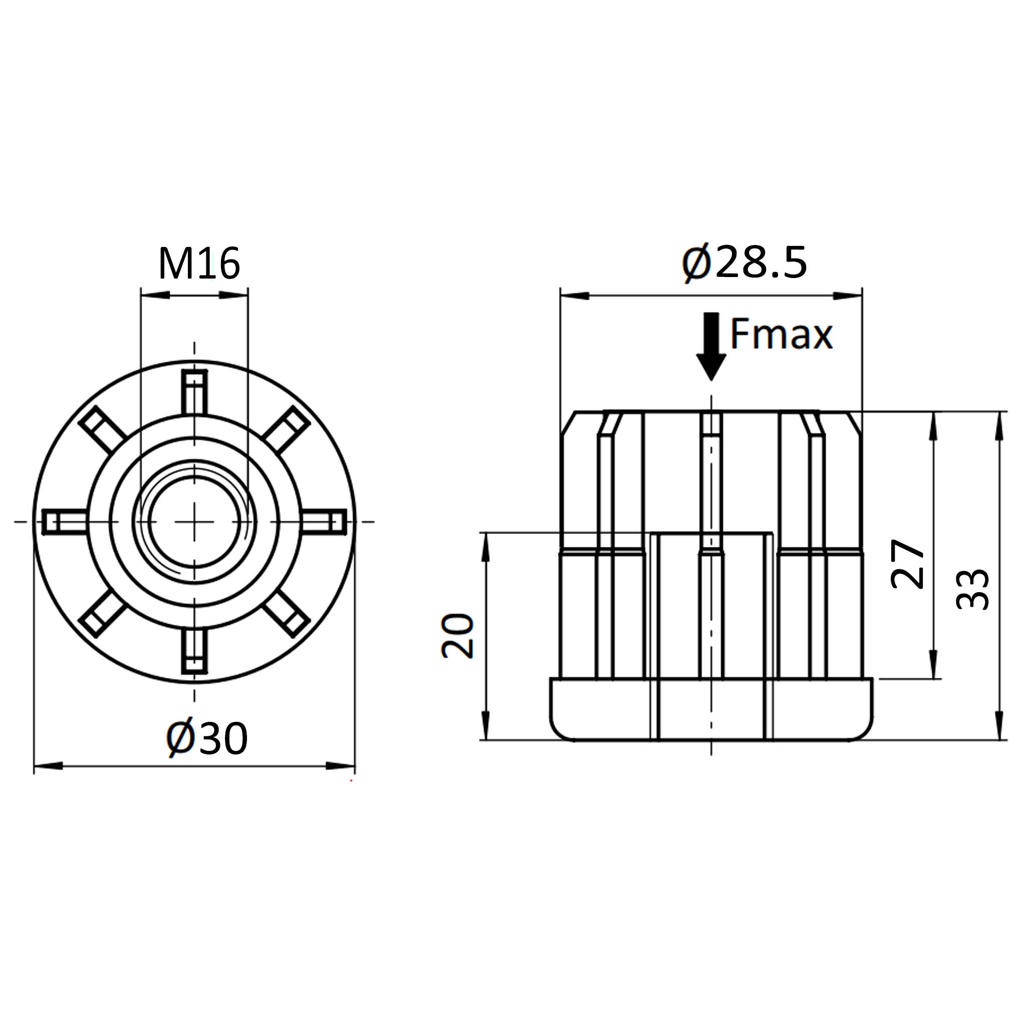This threaded plug is characterized by its precise workmanship and adaptability. With a diameter of 30 mm and a thread of M16, it offers excellent fitting accuracy for a variety of applications. The use of glass fiber reinforced plastic not only provides increased strength but also remarkable resistance to external influences. The plug is held in an elegant black, making it visually appealing and functional at the same time.Advantages