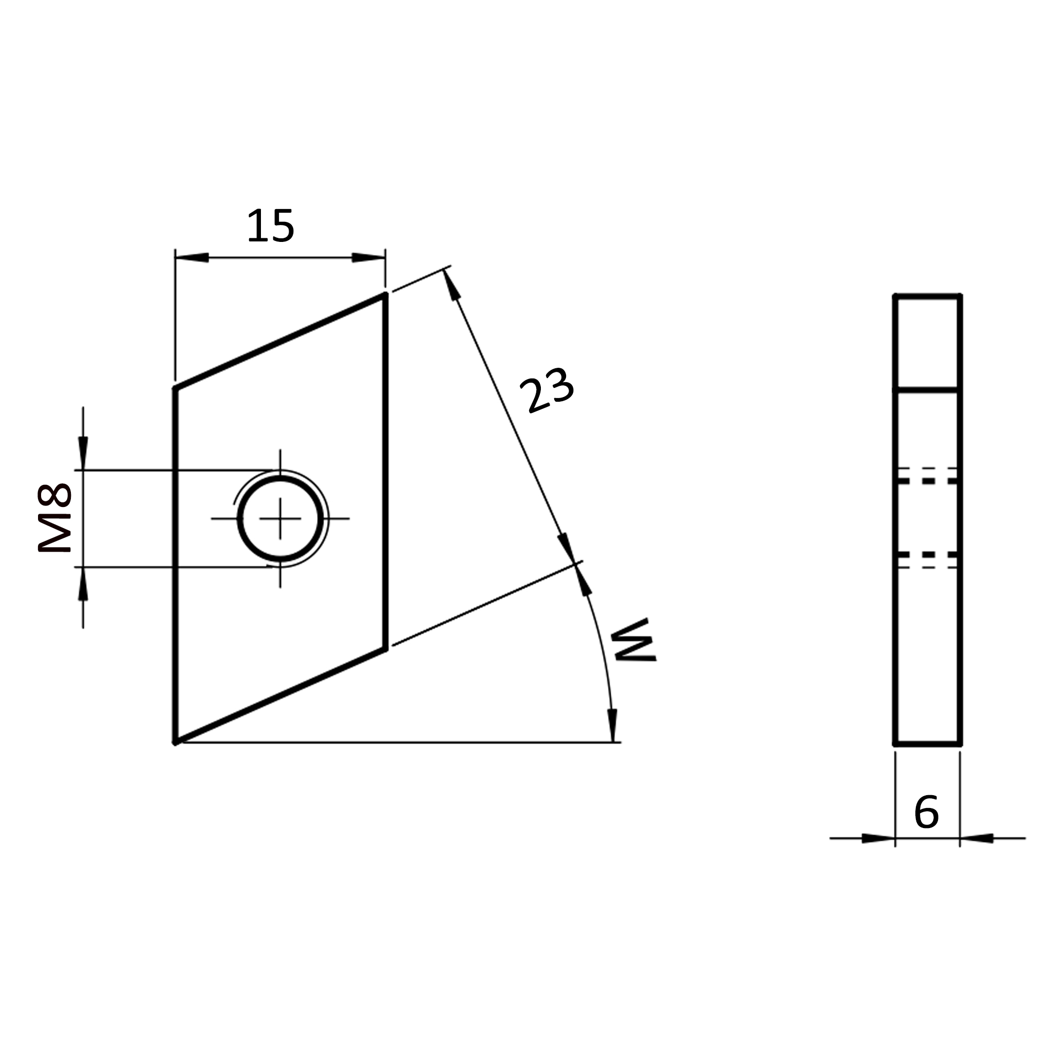 The dimensions of the Rhombus Thread Plate, namely 23x15x6 mm, are ideal for various applications where a compact yet robust fastener is required. Made from galvanized steel, the plate offers reliable corrosion protection and guarantees a long lifespan. The M8 thread size makes it compatible with a variety of screws and bolts, increasing its flexibility in application. The special rhombic shape not only gives the plate an elegant appearance but also enhances stability during installation.Advantages