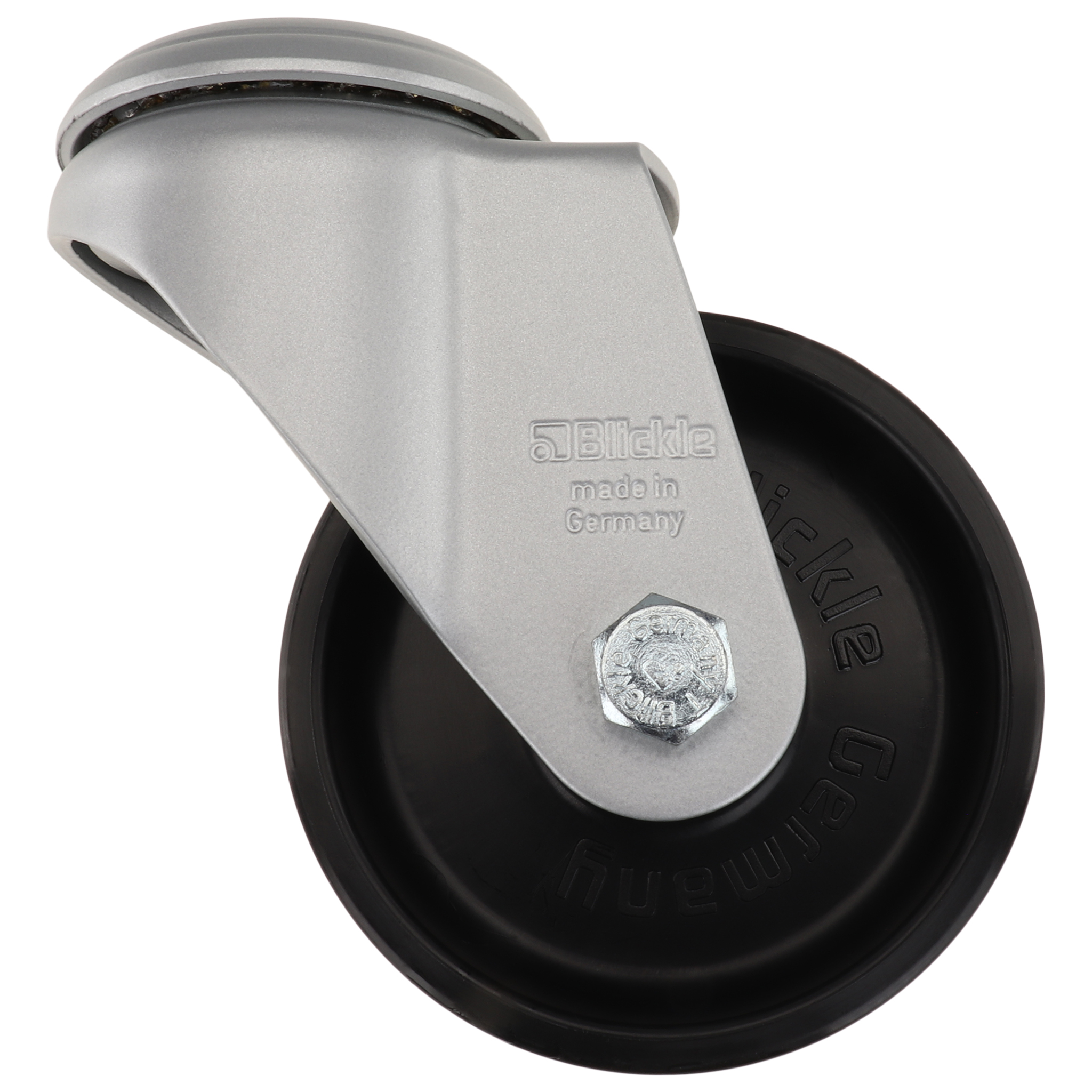 The castor stands out with its wheel body made of polyamide (PA), known for its robustness and durability. With a diameter of 80 mm, it offers an excellent balance between stability and maneuverability. The black color gives the swivel castor an elegant appearance that blends seamlessly into various environments. The precisely manufactured ball bearing mechanism ensures smooth and quiet movement, which is particularly advantageous in high-noise environments.Advantages of the Swivel Castor