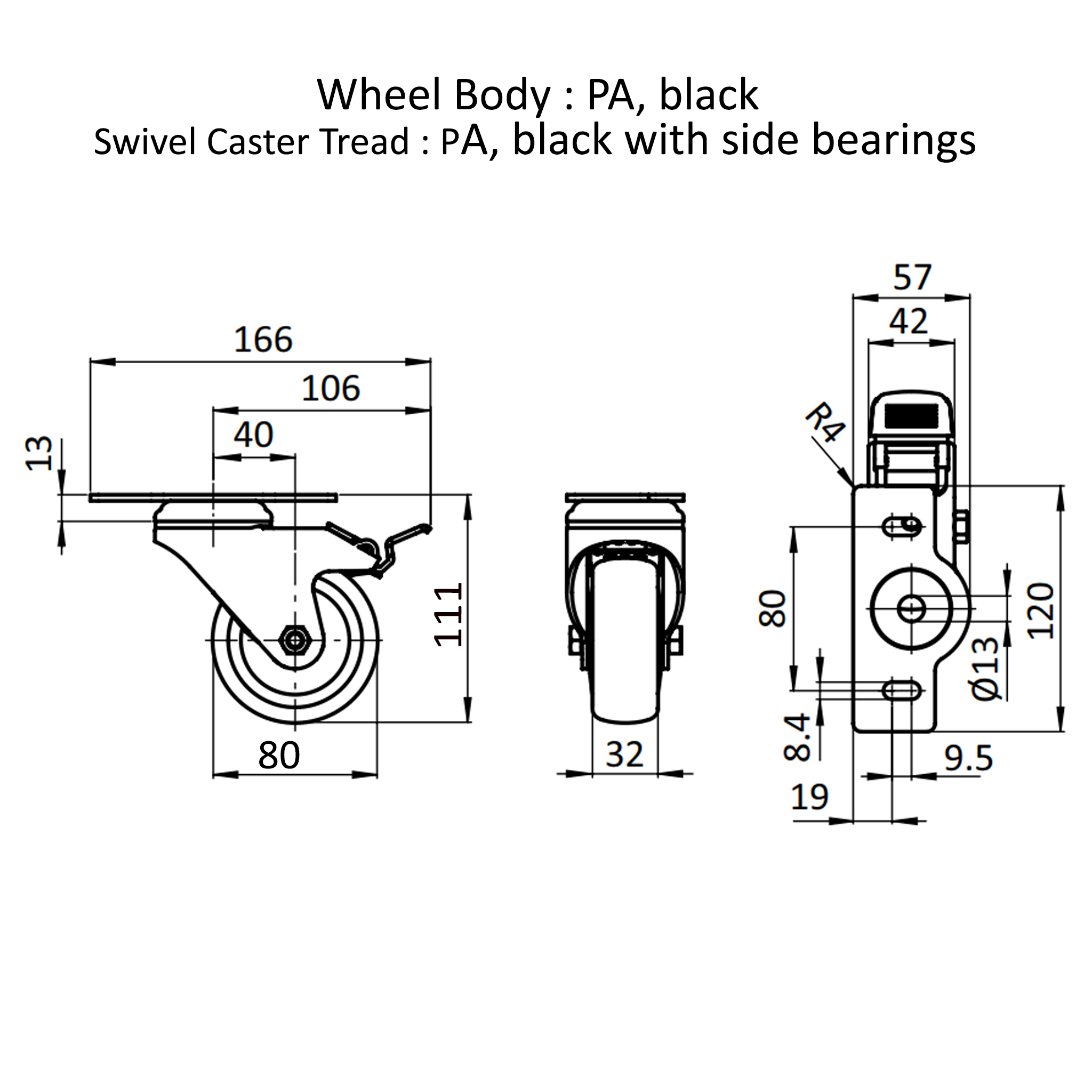 Roller, Swivel Caster, D80, Wheel Body PA, black