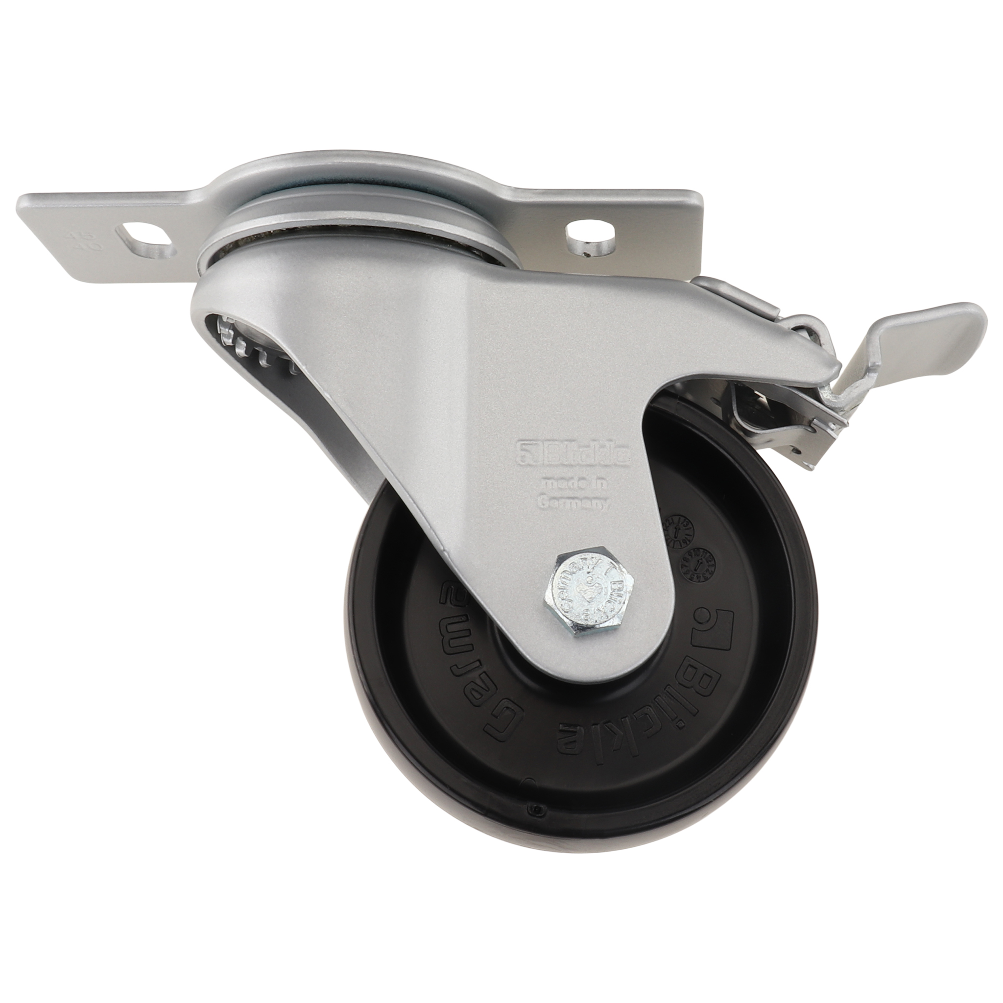 This caster is distinguished by its wheel body made of polyamide (PA), which is not only known for its excellent load-bearing capacity but also impresses with its resistance to abrasion and chemicals. The material ensures a quiet and smooth operation, making it a reliable choice for industrial use. The black wheel body gives the caster an elegant look, leaving a professional impression in any environment.Advantages
