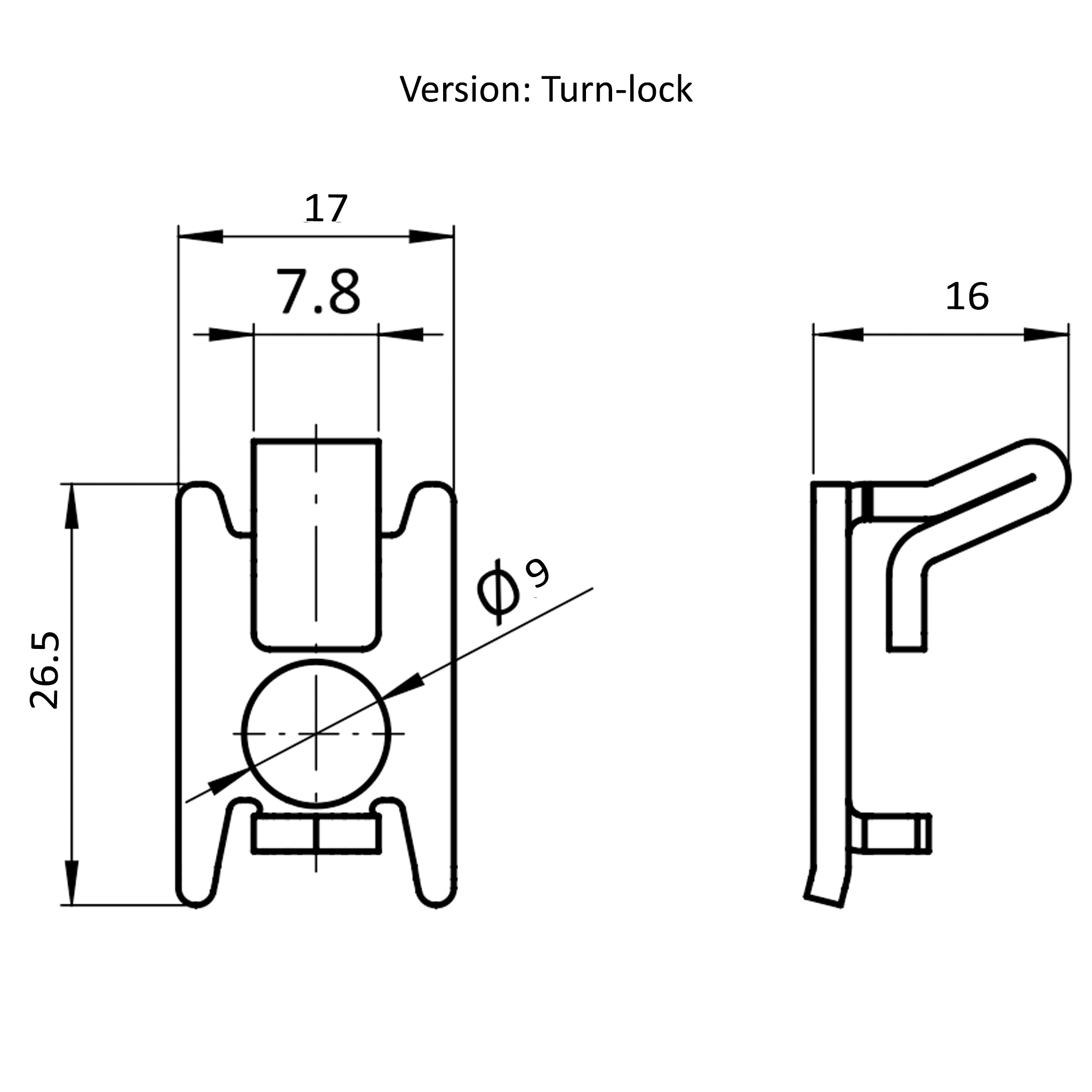 Securing, Turn-Lock, 17x27x16, Steel, zink plated