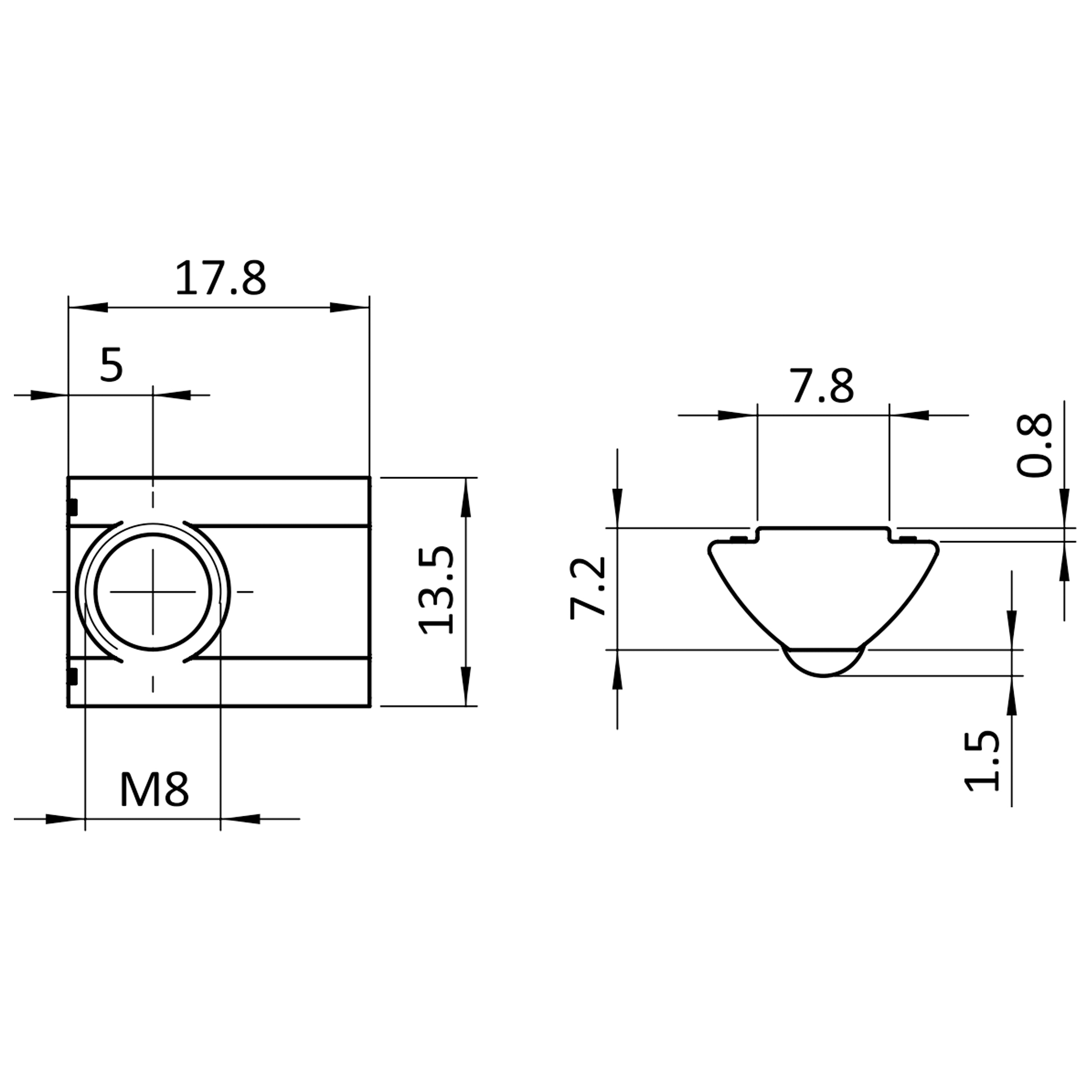 This T-slot nut impresses with its precise manufacturing and high fitting accuracy in slot 8 profiles. The integrated web provides additional anti-rotation security, which is particularly advantageous under dynamic loads. The M8 threaded connection allows flexible use with various screws and fastening elements. The zinc plating not only offers protection against rust but also gives the T-slot nut an appealing appearance.Advantages and Benefits