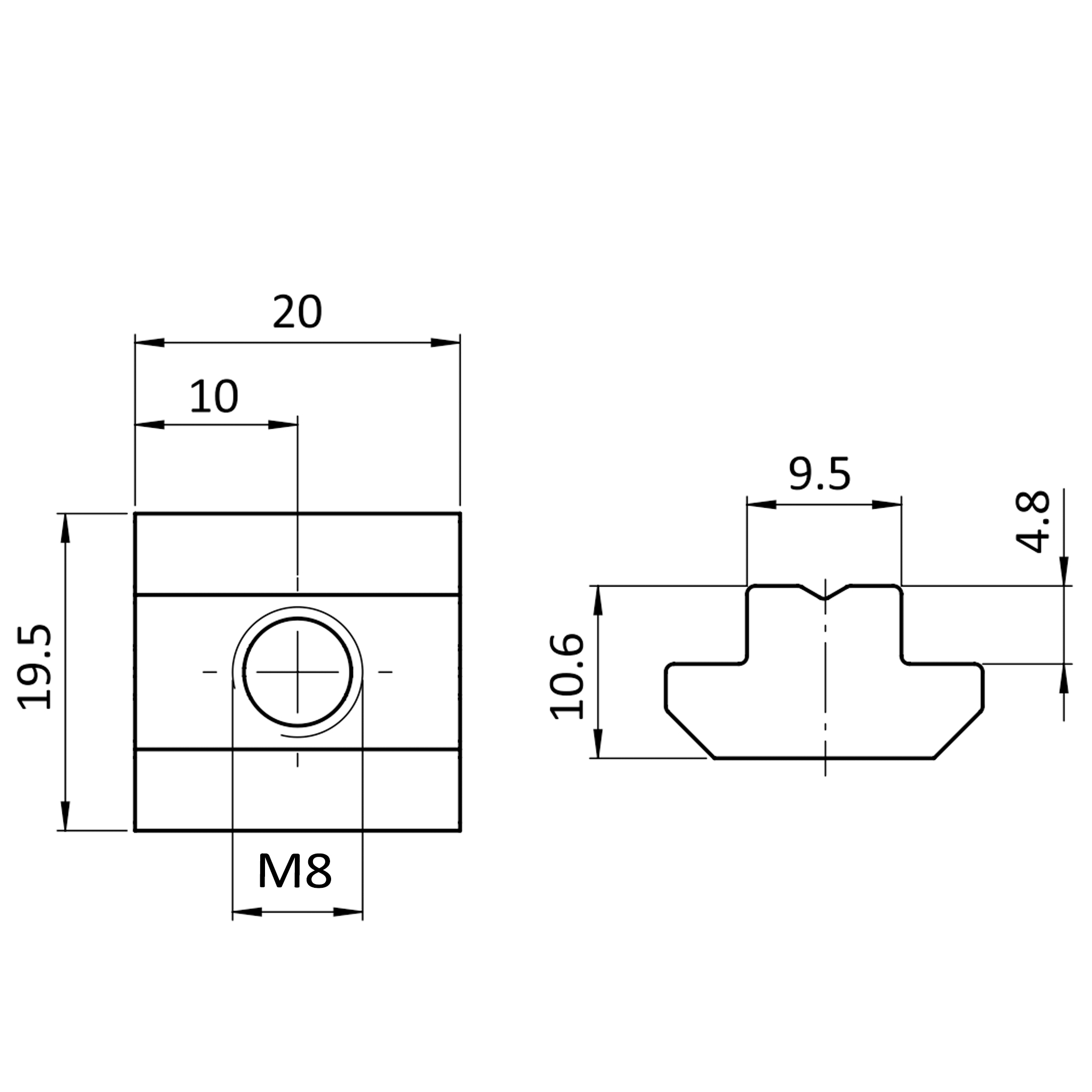 In summary, the T-slot Nut M8, Slot 10, with web from 3d24 is an indispensable element for anyone seeking a reliable and durable solution for their construction projects. Its excellent properties combined with high-quality workmanship make it a product that should not be missing in any workshop. Choose the T-slot nut from 3d24 and benefit from its quality and functionality in your projects.| Additional Property: | Step height 4.8mm |