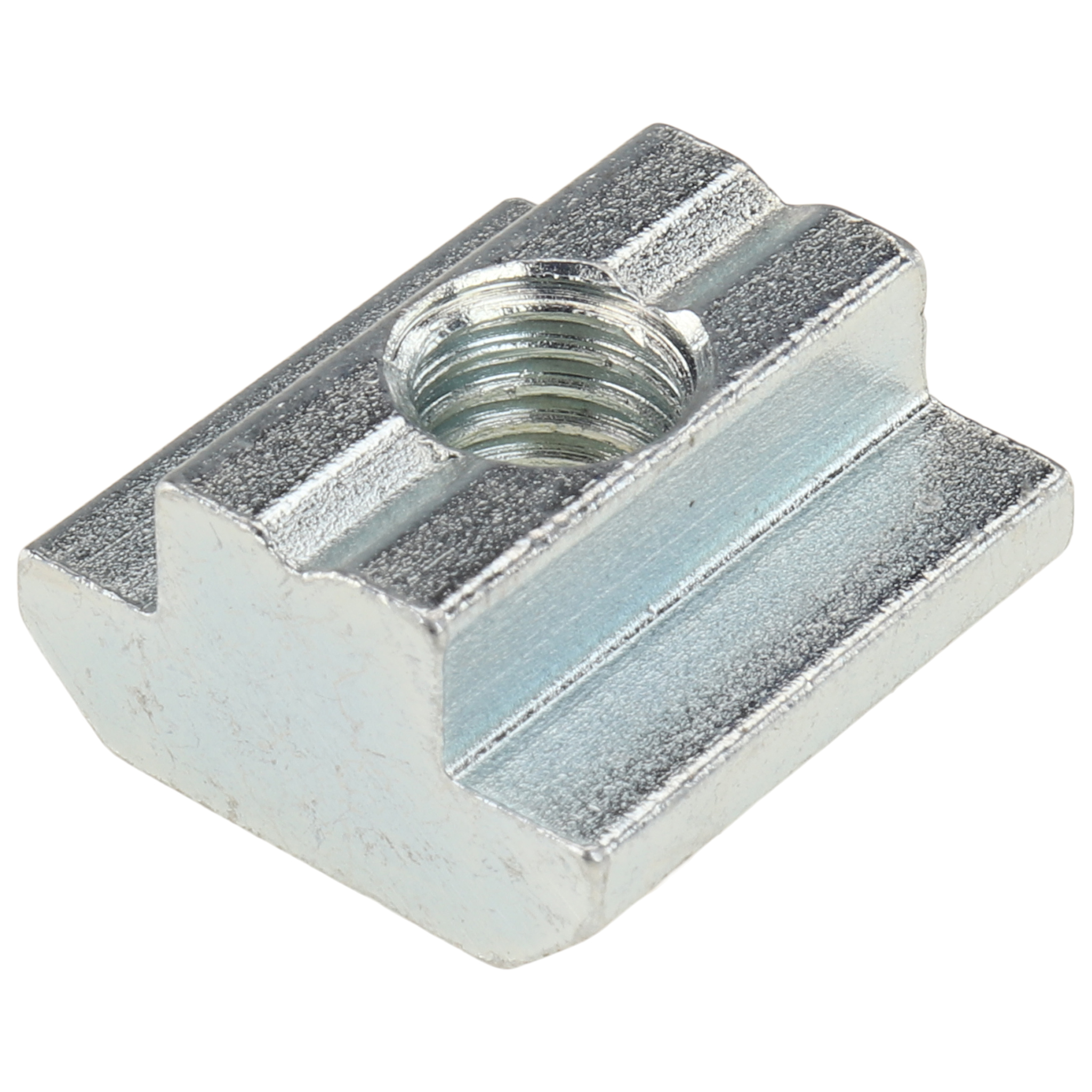 The T-slot nut is made from high-quality steel and features a galvanized surface that ensures increased corrosion resistance. With an M8 thread and a slot width of 10 mm, the T-slot nut is ideal for connecting aluminum profiles and other structural elements. The integrated web ensures secure and stable positioning within the slot, significantly facilitating assembly and enhancing the stability of the overall system.Advantages and Benefits