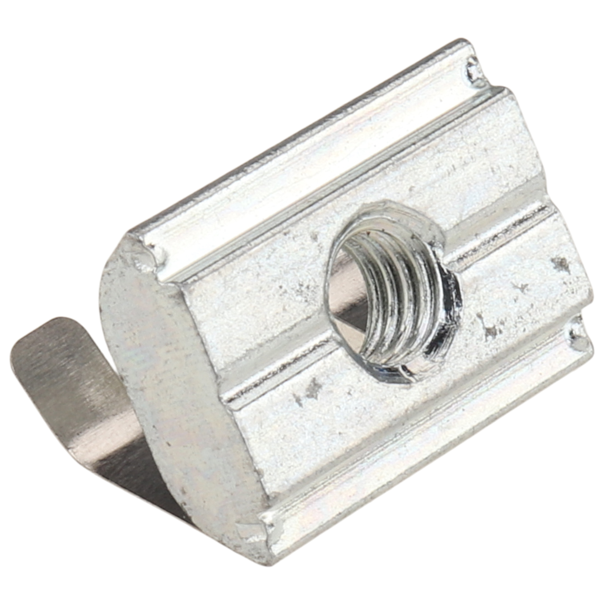 The T-slot nut is distinguished by its high-quality workmanship and its well-thought-out design. It is made of galvanized steel, which makes it particularly resistant to corrosion. The integrated web and spring plate ensure a secure and firm connection in Slot 8. This Type B T-slot nut is designed to integrate seamlessly into existing systems without compromising stability.Advantages