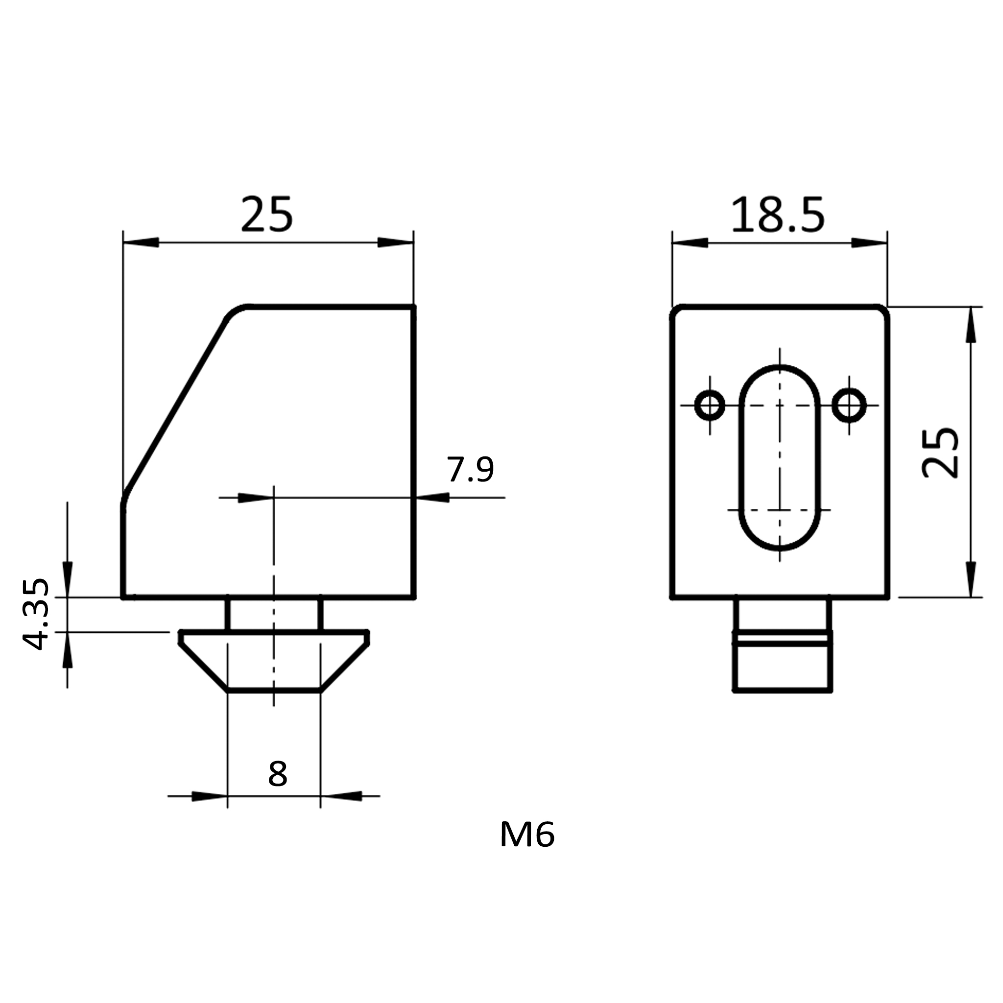 In summary, the Uniblock 25 by 3d24 represents an excellent solution for numerous industrial applications. Its high-quality materials and precise processing guarantee a long lifespan and high reliability. The combination of stability, adaptability, and quality makes it an indispensable component in the modern manufacturing industry. Anyone looking for a technically sophisticated and high-quality product will make an excellent choice with the Uniblock 25, Slot 8, Type I, Plastic PA glass fiber reinforced.| Additional Property: | Profile step dimension 4.5 mm |