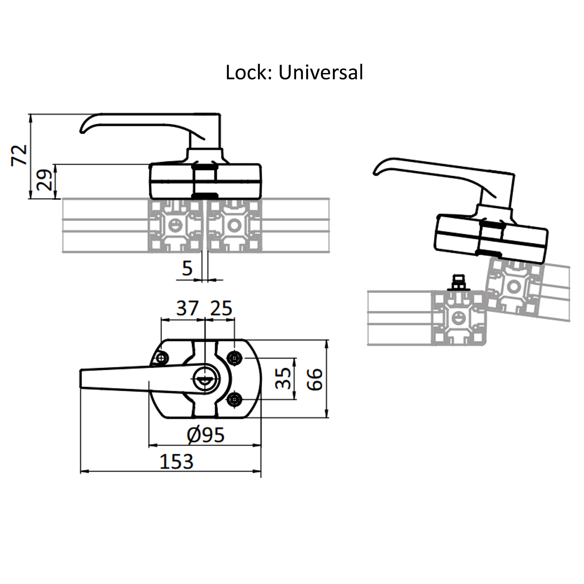 | Setinfo: | 1 door lock, 2 screws DIN EN ISO 4762 (DIN 912) - M6 x 30, 1 washer 6-FSt, 1 anchor - M6, 1 nut DIN 934 - M6, 1 washer DIN 9021 form A - 6.4, 3 hammer nut - slot 8 - M6, 3 hammer nut - slot 10 - M6 |